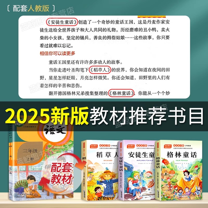 全套7册 稻草人三年级上下册必读正版的课外书安徒生童话全集格林童话故事书小学快乐读书吧三上课外阅读书籍推荐稻草书叶圣陶老师
