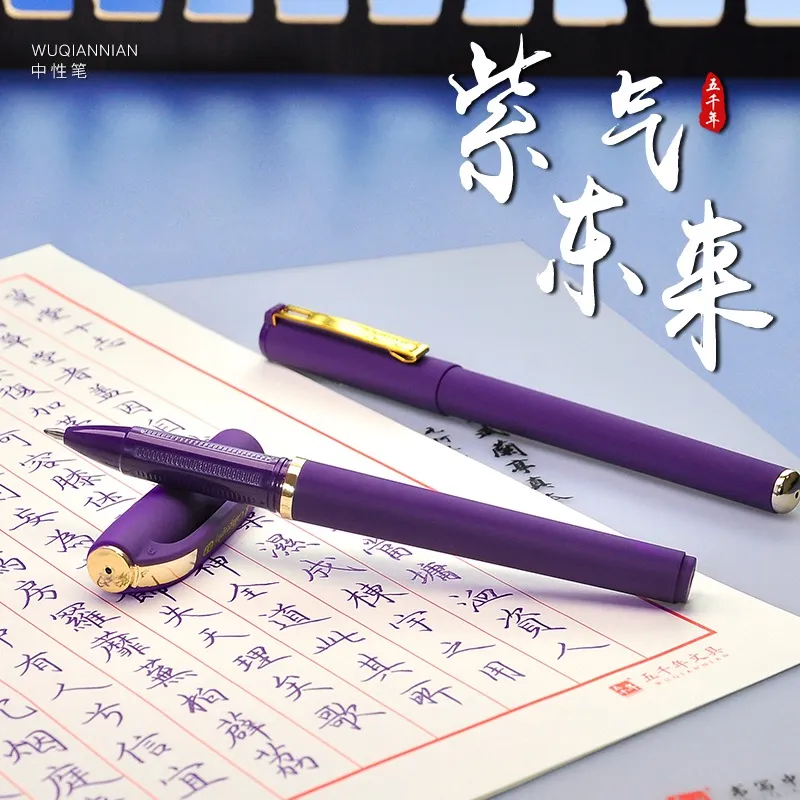 五千年紫气东来0.7/1.0mm学生练字笔大容量千黛紫中性笔子弹头