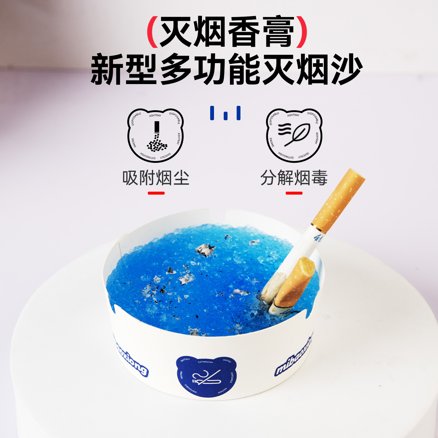 创意自带灭烟沙一次性烟灰缸加厚加硬办公室防烟味飞灰便携客厅