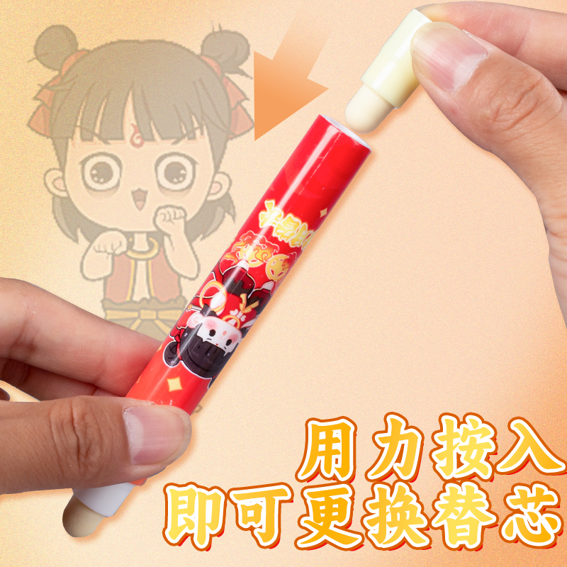 哪吒创意5接头橡皮擦套装小学生一年级萌趣下蛋推式橡皮幼儿园卡通子弹头像皮擦得干净少屑不易留痕可换替芯