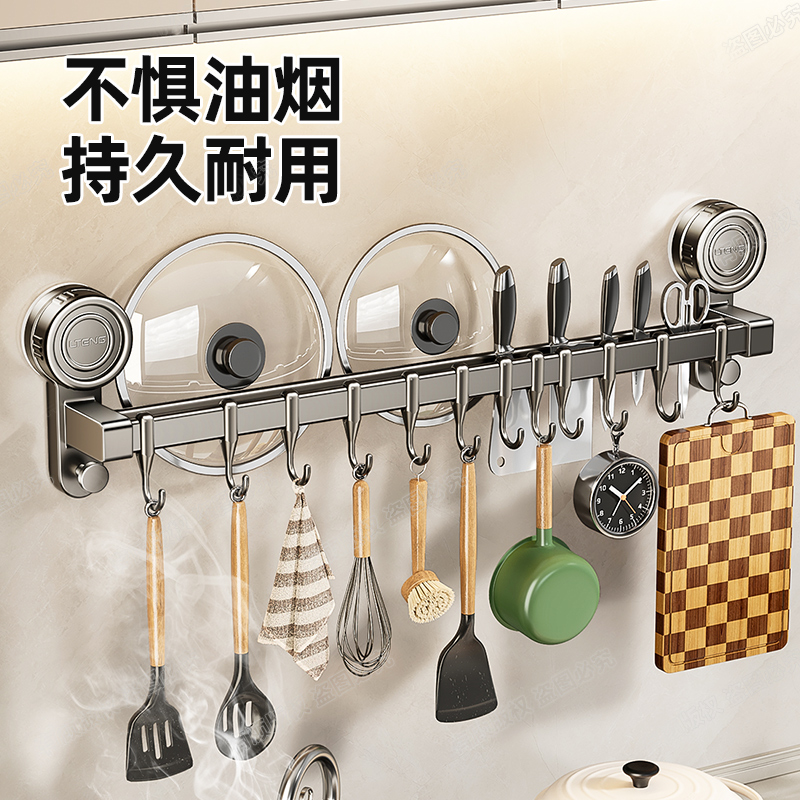 厨房挂钩吸盘置物架免打孔挂杆锅铲挂架排钩收纳架强力刀具承重