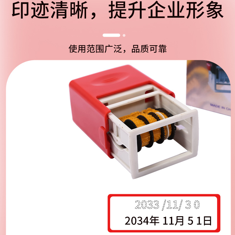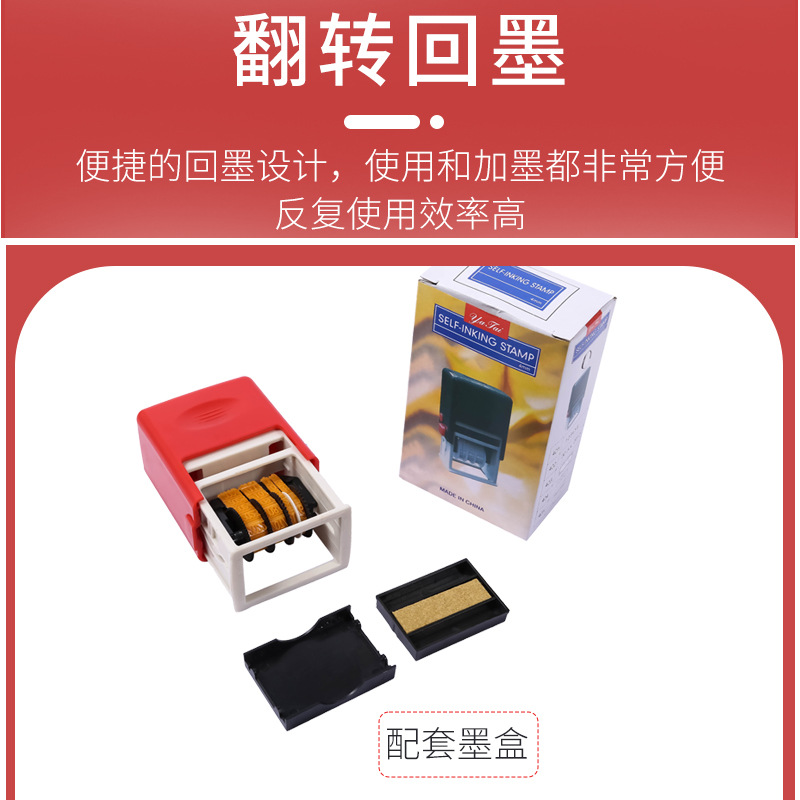 402中文虚线实线可调年月日期自动回墨印章材料 翻转回墨印章
