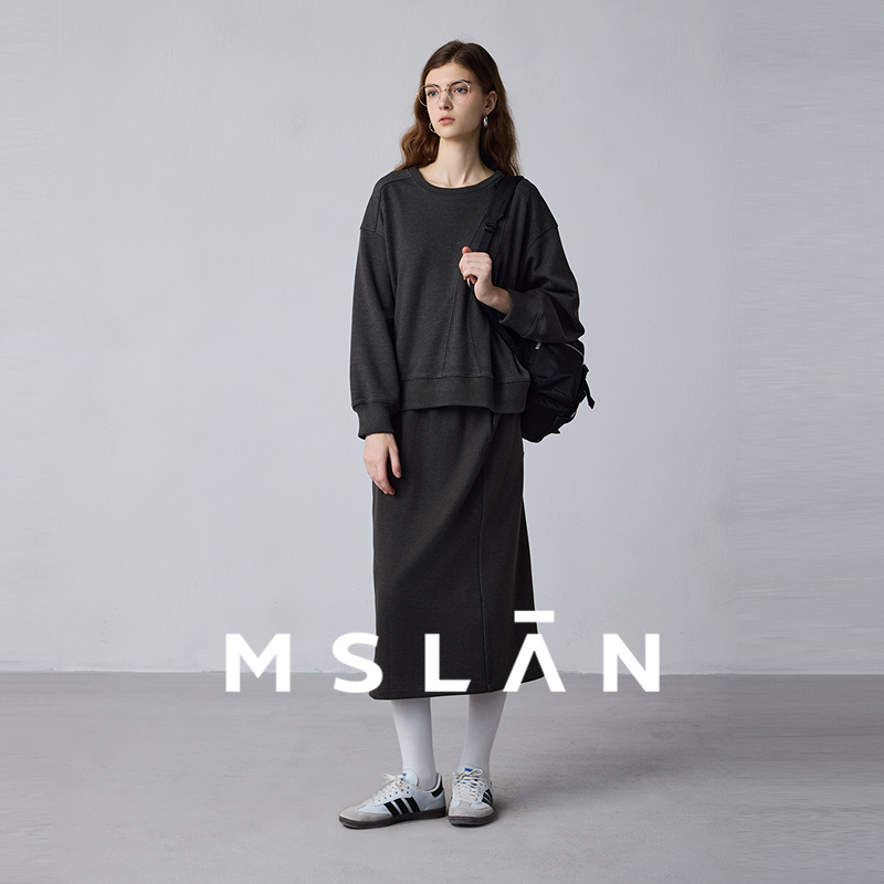 【拼接卫衣套装】MSLAN秋冬慵懒减龄圆领不规则卫裙MFDT025