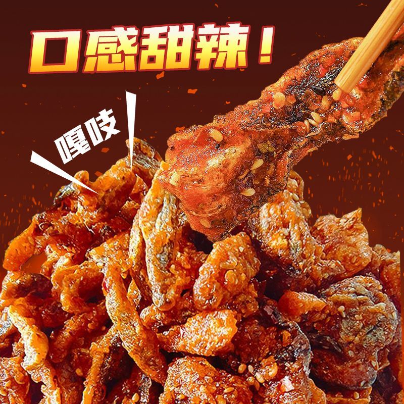 香辣鳕鱼皮即食鱼零食油炸小鱼仔口味鱼海鲜风味网红鱼皮甜辣休闲