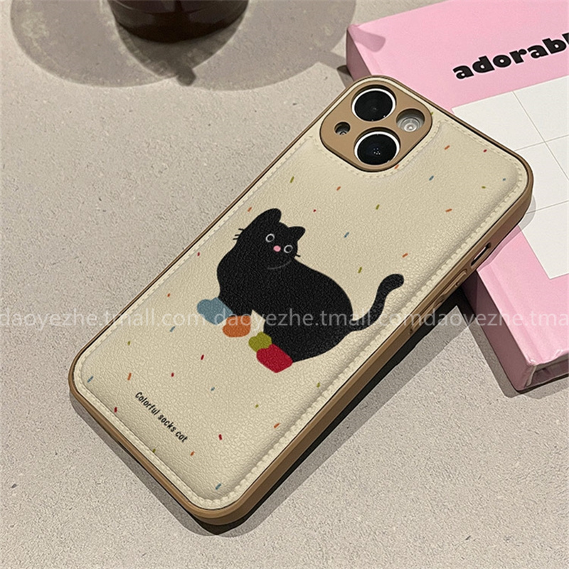 秋冬皮纹泼墨猫咪适用于小米17promax手机壳k80/15皮质note14/K70e新款K60可爱红米K50女13防摔K40全包高级感