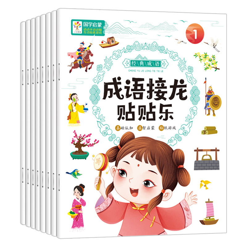 全6册成语接龙游戏贴贴乐儿童贴纸书234567岁宝粘贴贴画专注玩具宝宝全脑反应力训练