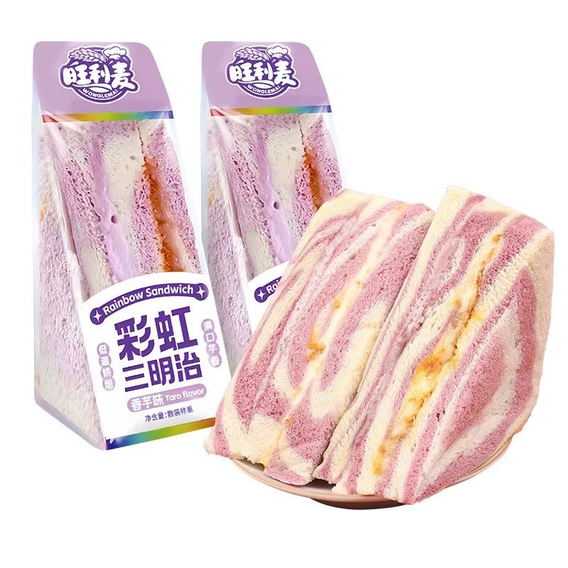 旺利麦芋泥肉松三明治面包早餐香芋无边夹心吐司解馋小零食休闲