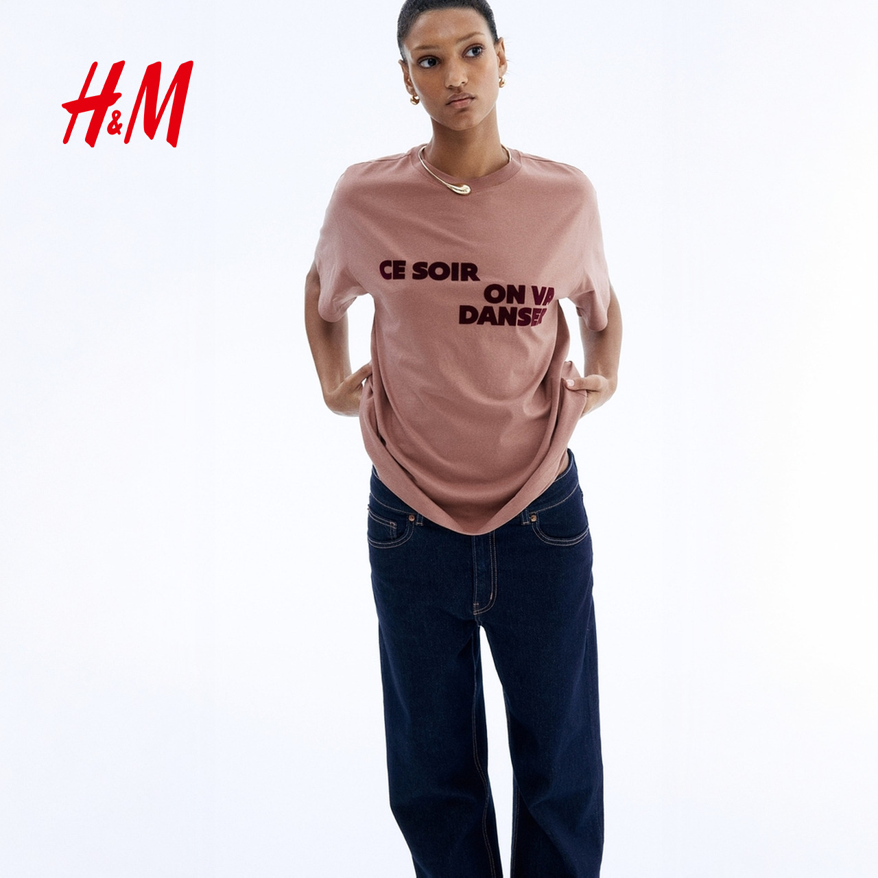 HM女装T恤2025年秋季新款大廓形圆领微落肩直筒短袖上衣1274174
