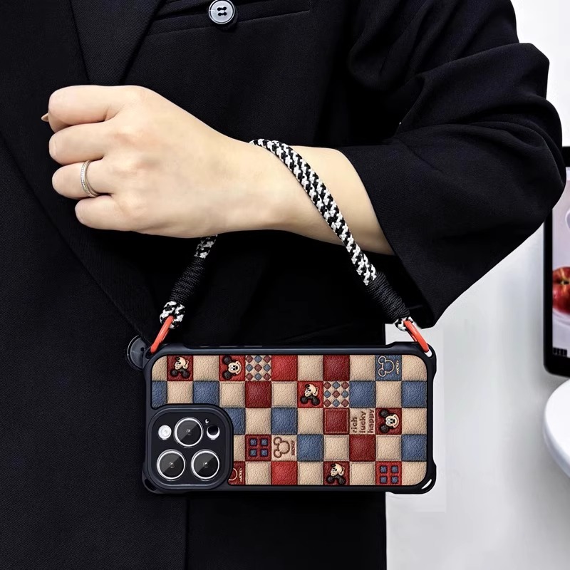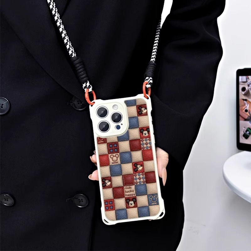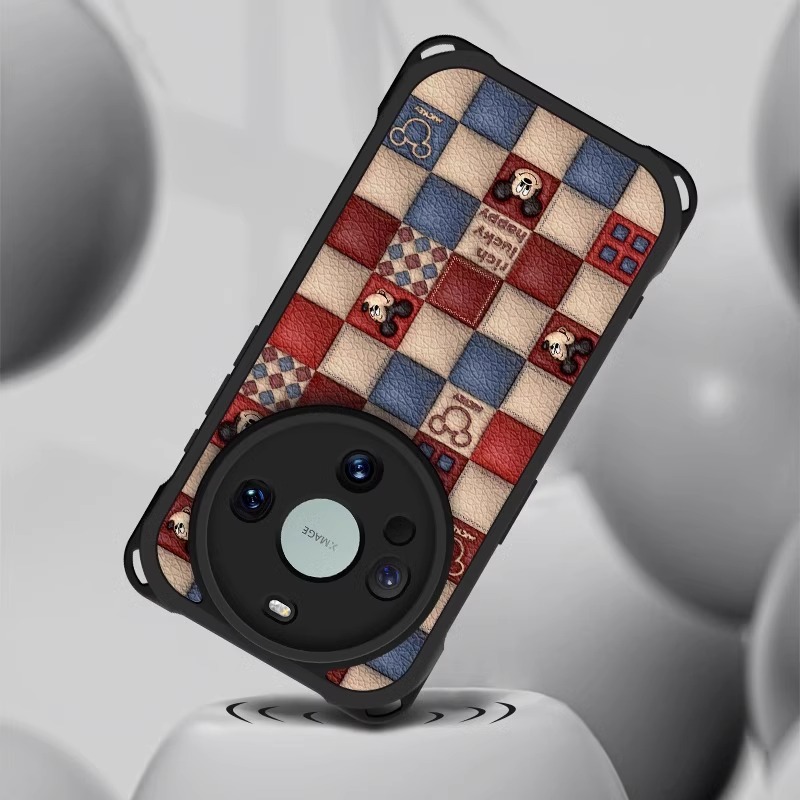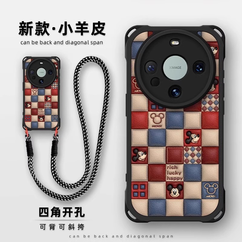 格子米奇适用华为mate80pro手机壳70新款mate60四角防摔m50pro硅胶高级感m40小羊皮长短挂绳50复古全包30