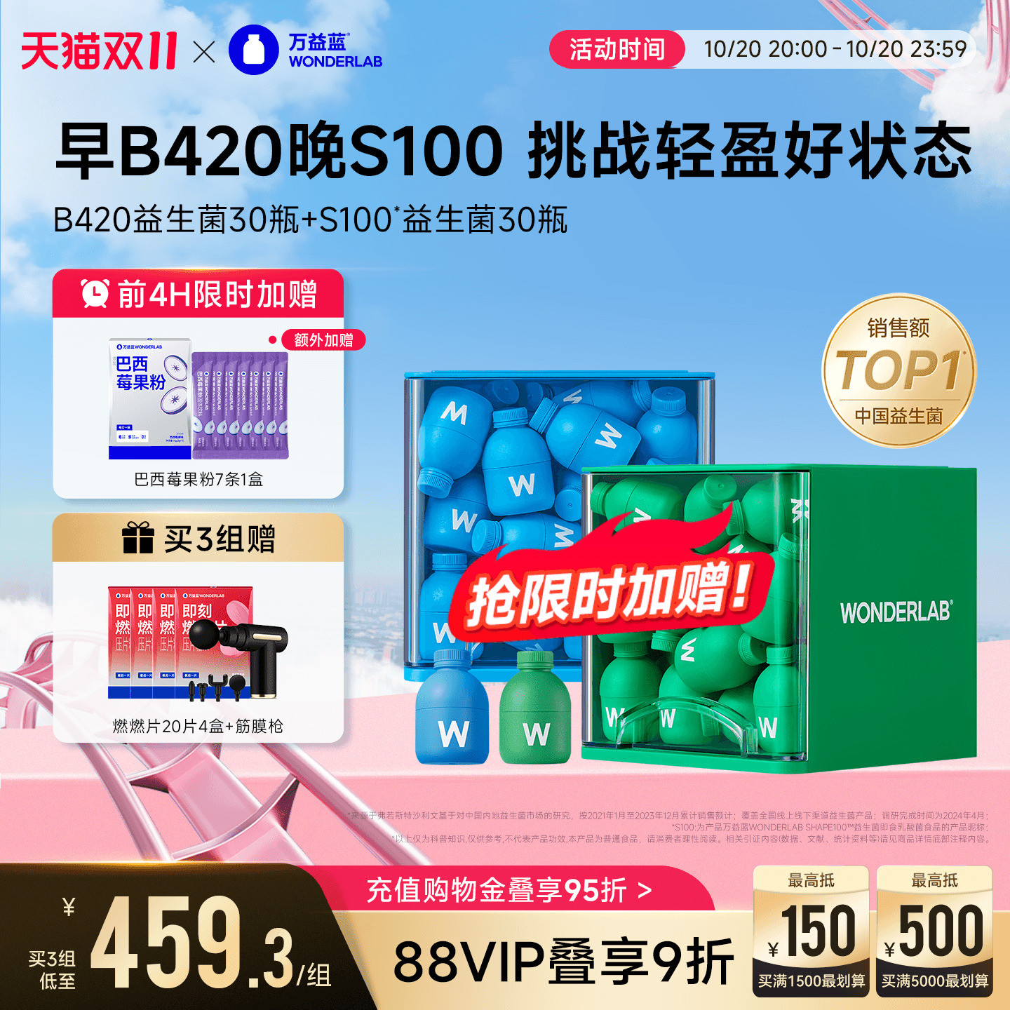 万益蓝wonderlab益生菌群管理法成人体重代谢冻干粉早b420晚s100