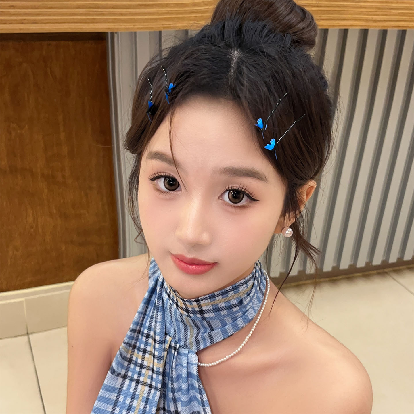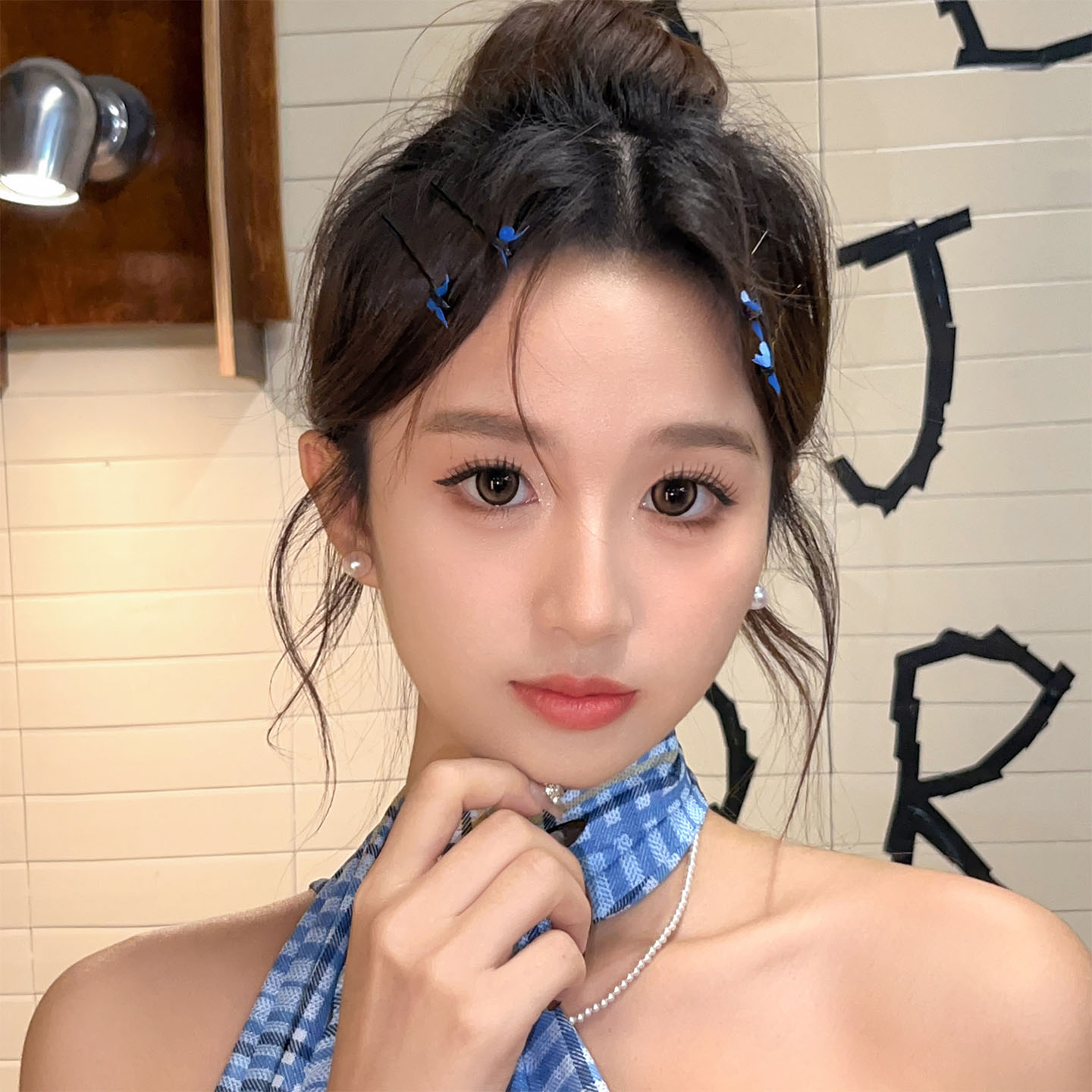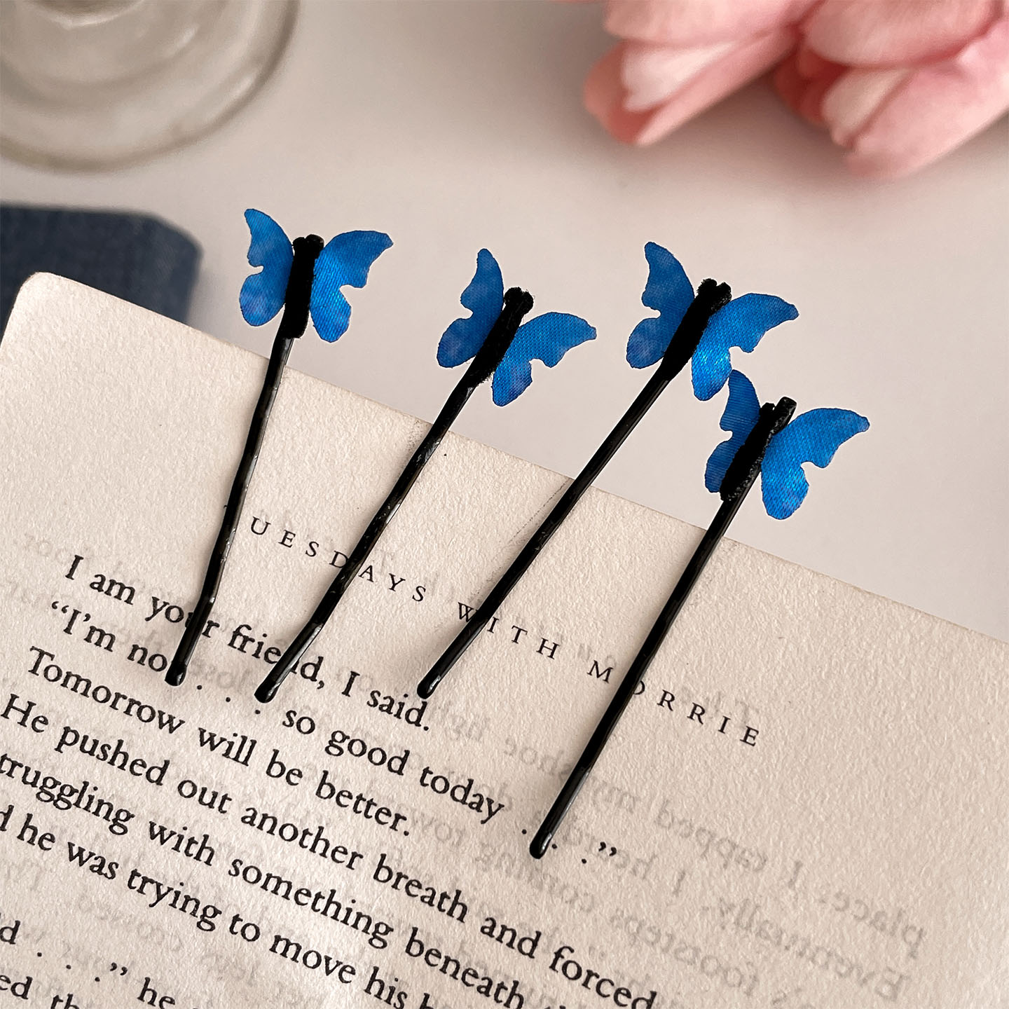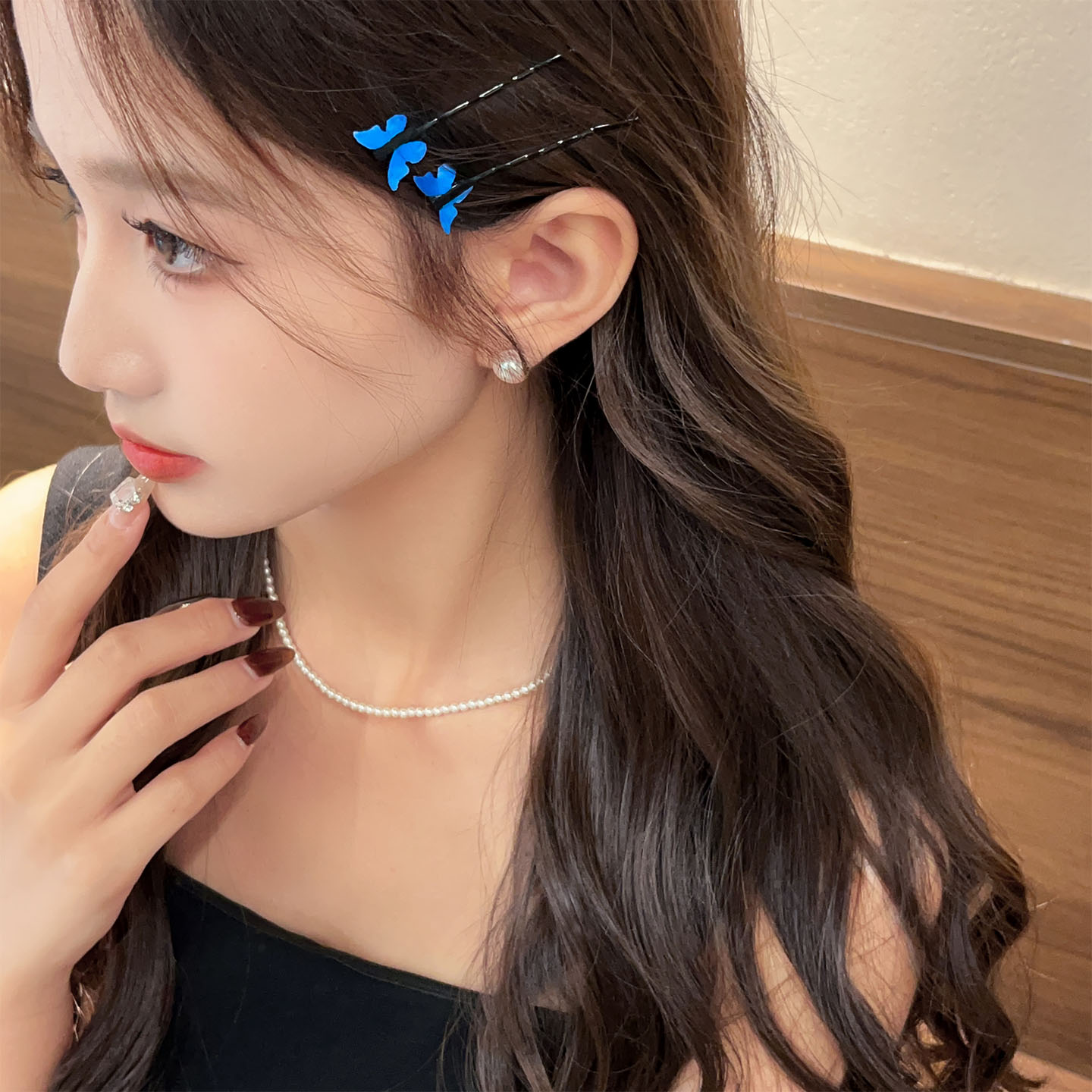 2025新款韩版时尚气质百搭蓝色蝴蝶发夹少侧边刘海夹发饰一字夹女