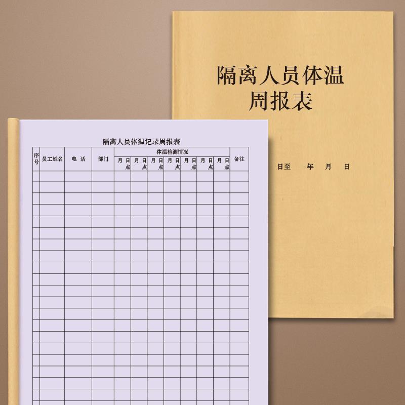 员工体温记录周报表职员上下班门岗门卫保安值班登记本测量体温进