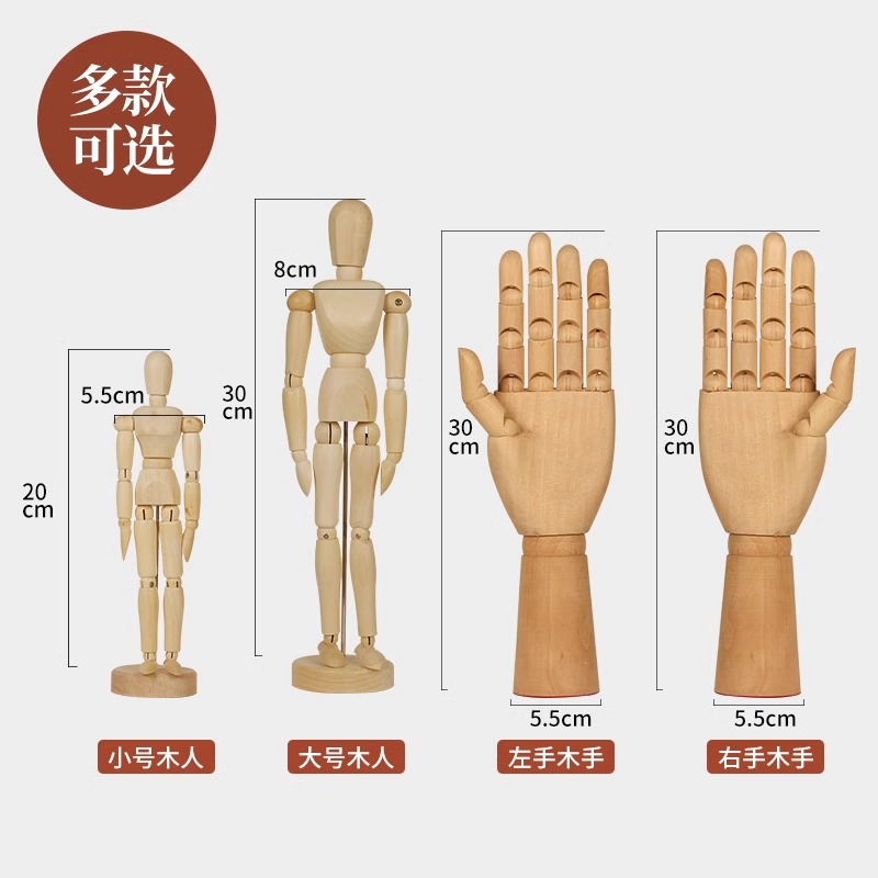 美术专用练习儿童绘画动物绘画临摹绘画素材素描木偶人模型木手仿人体比例速写绘画专用木头人模型木偶手