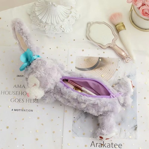 包邮】日本可爱文具卡通小熊毛绒ins学生小兔子笔袋收纳铅笔盒女