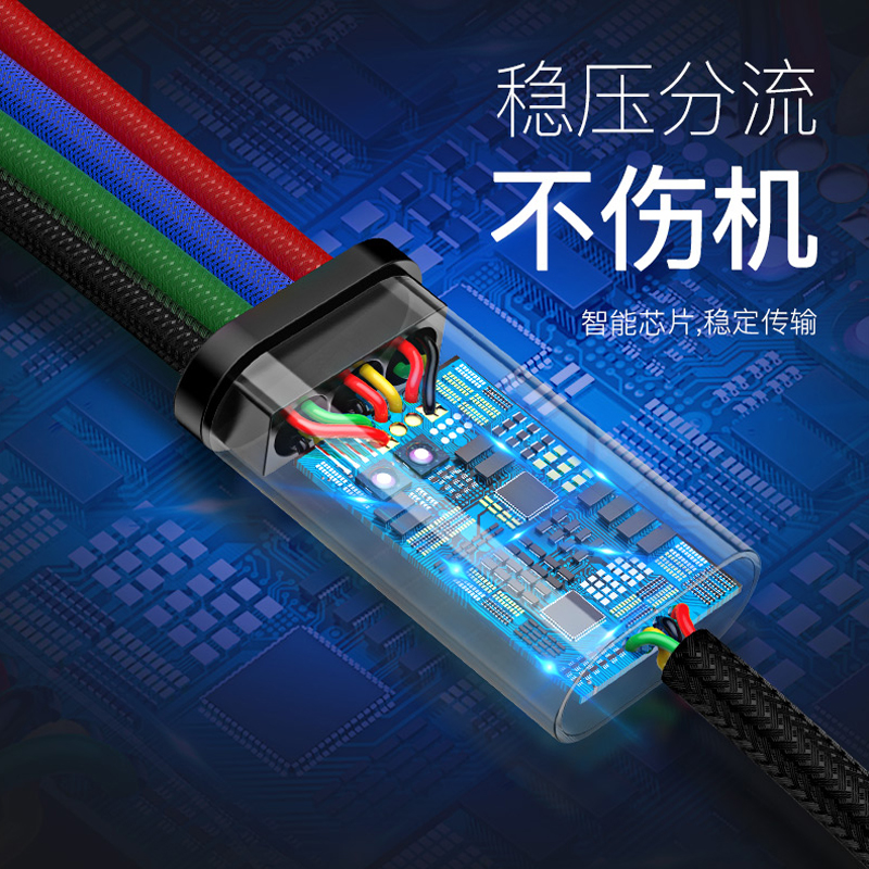 倍思数据线三合一充电线器一拖三快充三头适用多头车载苹果Typec充手机车超级车用汽车USB伸缩多功能多用电器