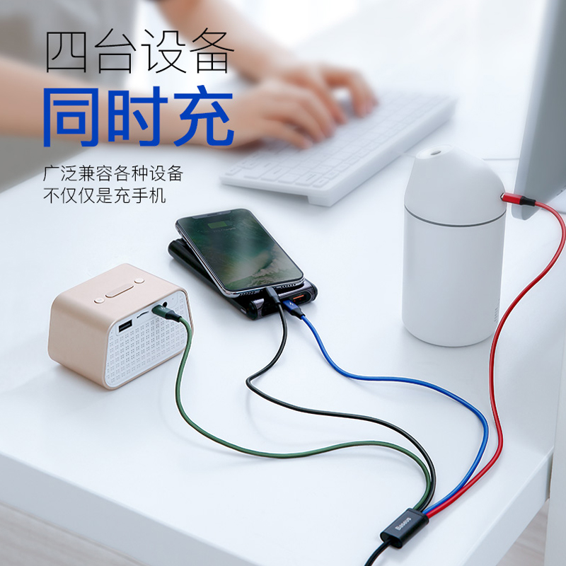 倍思一拖四数据线一拖三充电线适用于华为小米oppo苹果type-c安卓三合一多头多功能手机快充车载冲电线器加长
