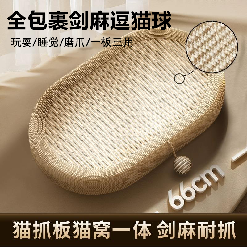 剑麻猫抓板耐磨不掉屑猫窝耐抓麻绳剑麻球一体大号磨爪器猫咪用品