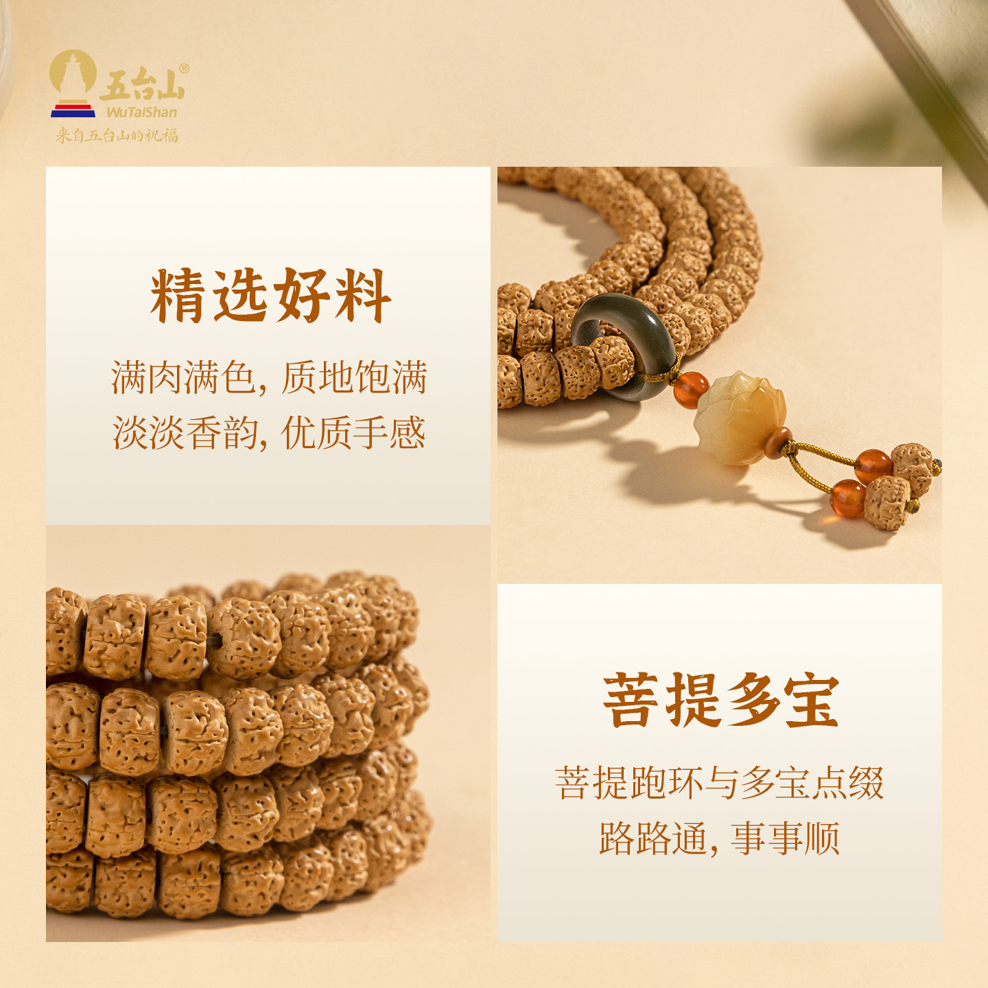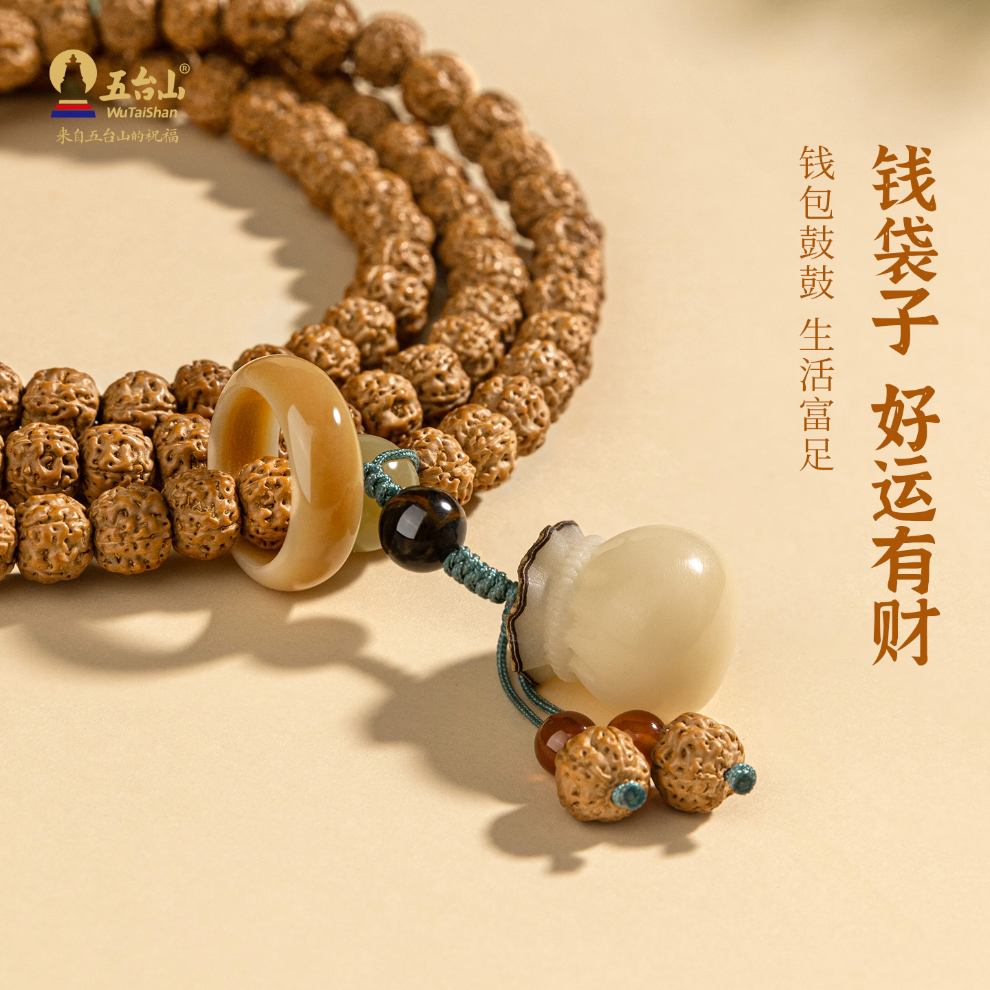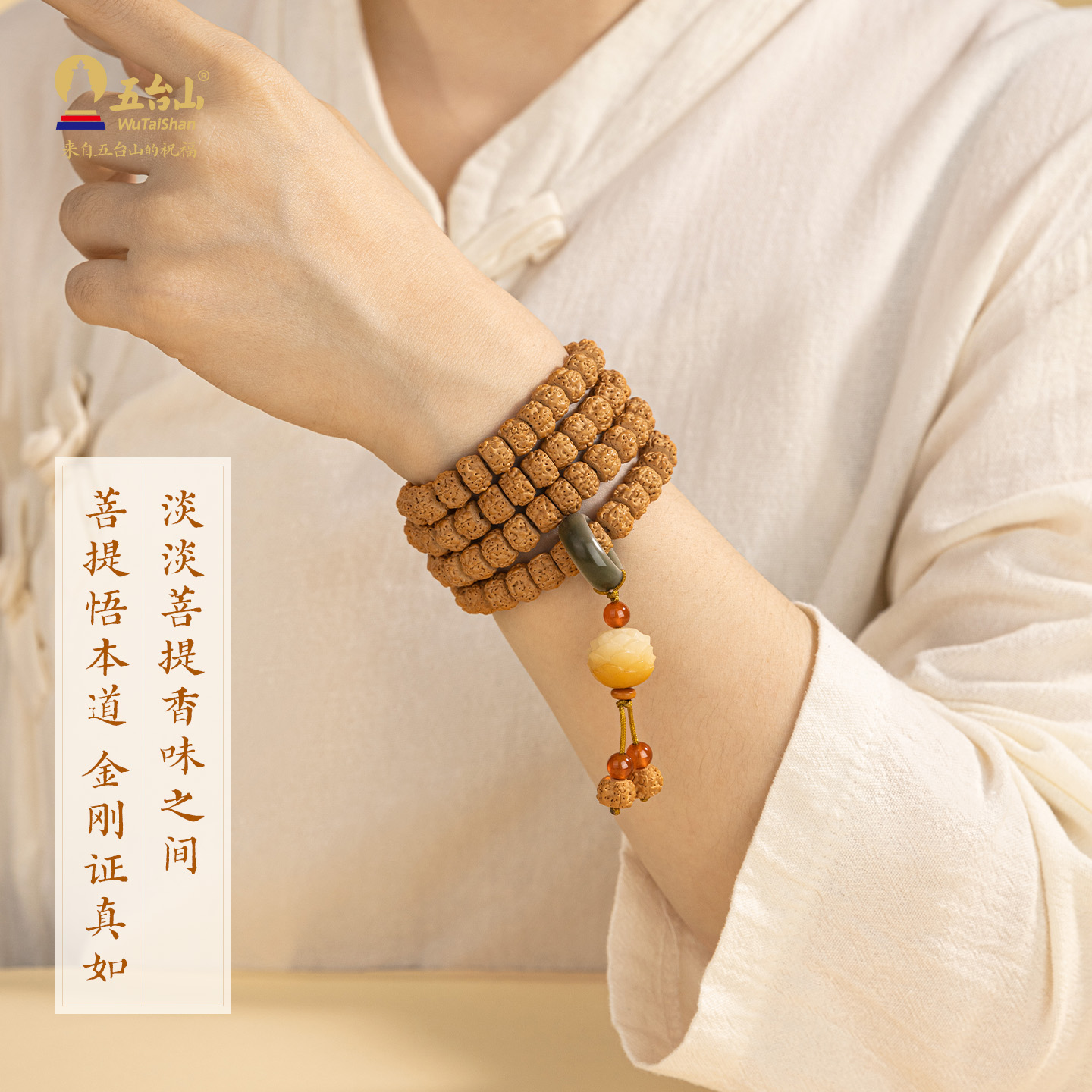 五台山天然金刚菩提手串108颗佛珠盘玩招财好运菩提跑环文玩手链