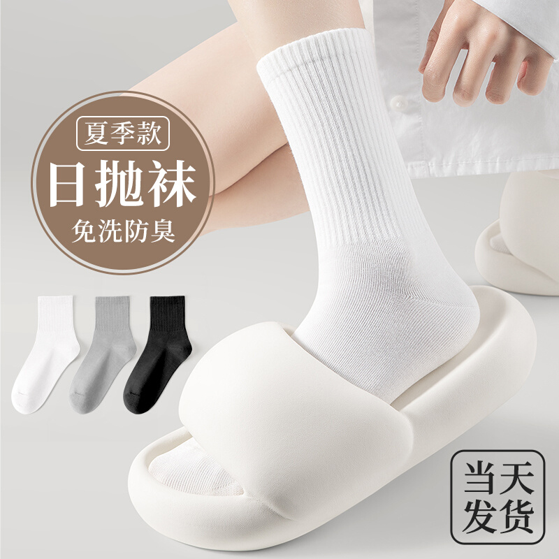 一次性袜子男款100双纯色防臭中筒长袜短袜黑色白色丝滑日抛吸汗