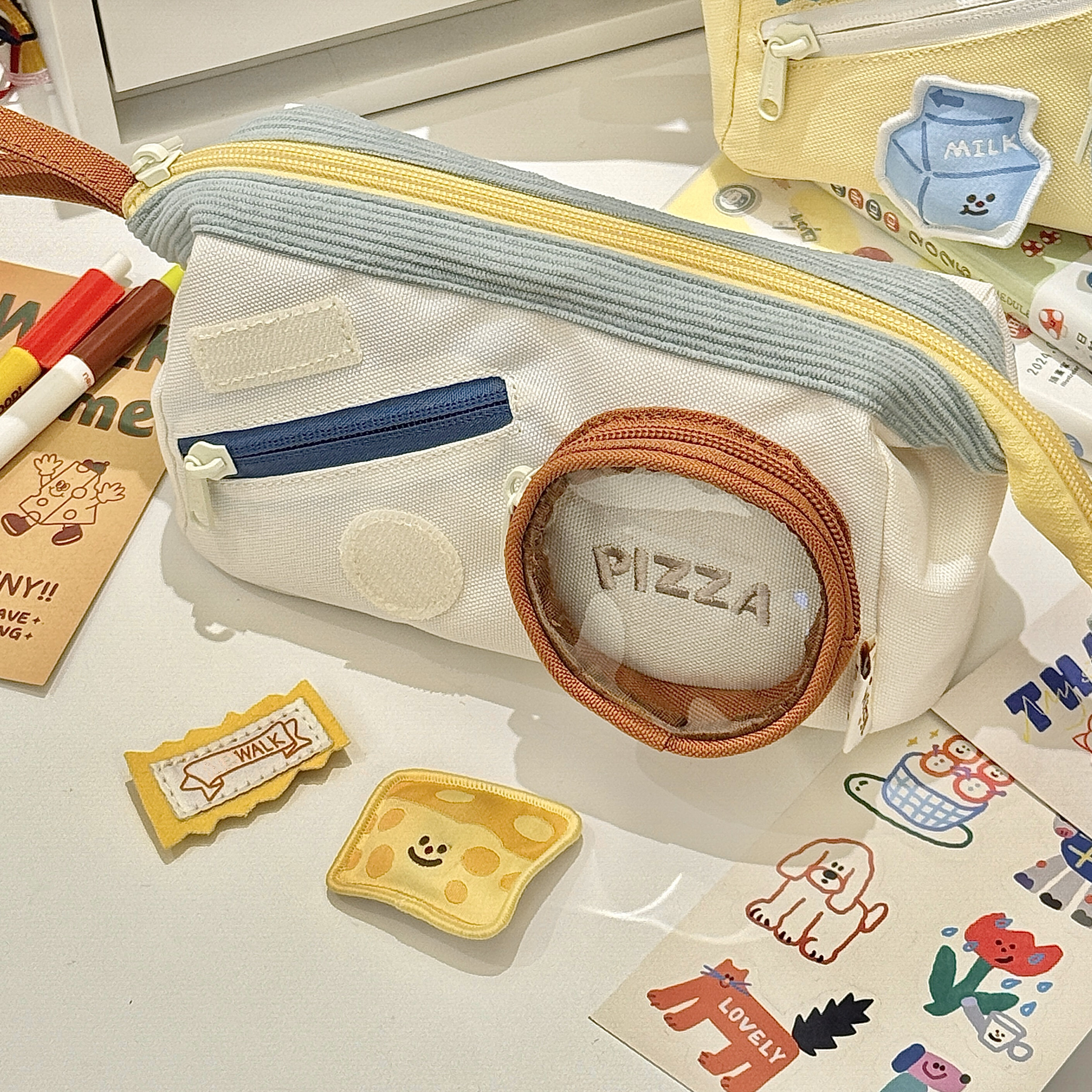 食物撞色透明痛包笔袋高颜值大容量学生多功能文具收纳袋铅笔盒
