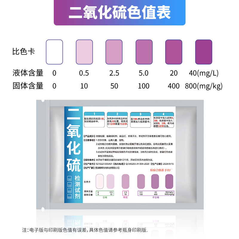 二氧化硫硫磺检测试剂枸杞中药硫亚硫酸盐检测管10次化学水质实验