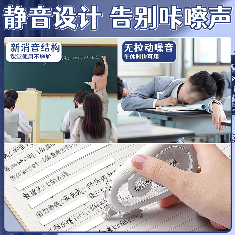 晨光静音耐摔修正带学生用大容量实惠装30m优品ins日系高颜值涂改带改正带遮盖力强小学生初中生专用改错带