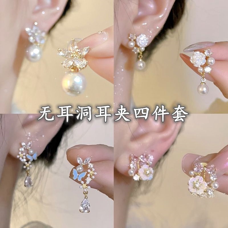 栀子花开。温柔法式气质甜美锆石花朵珍珠蚊香盘耳夹百搭耳钉耳环