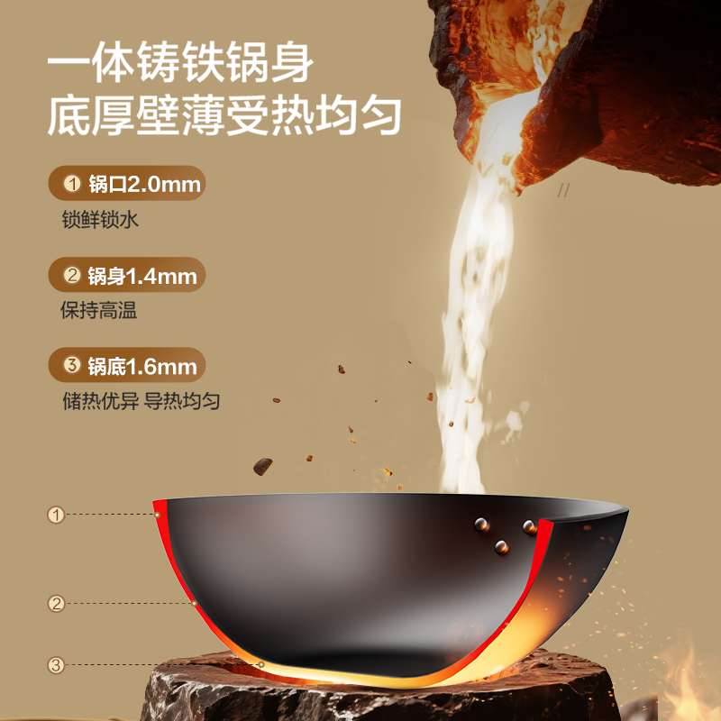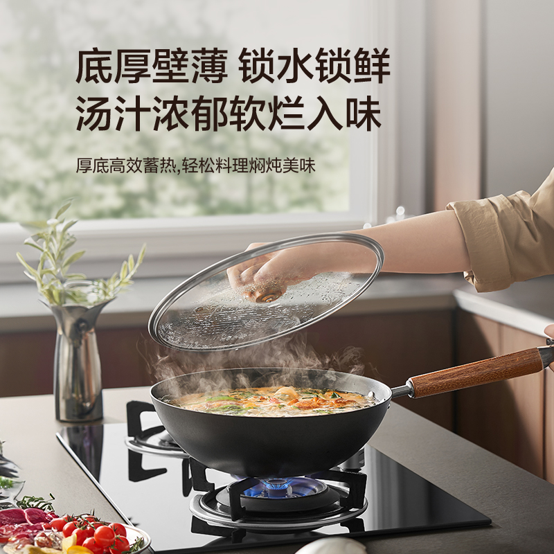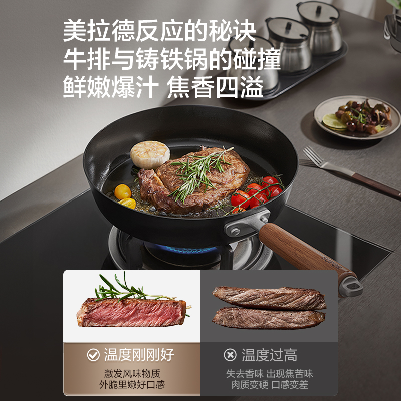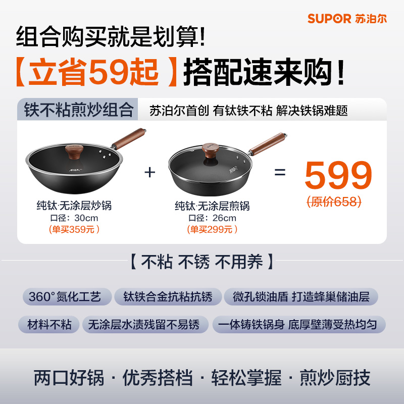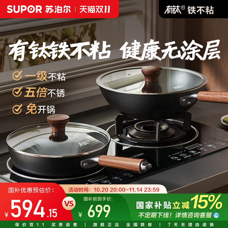 苏泊尔有钛铁不粘锅具二件套装家用无涂层厨房免开锅铸铁煎锅炒锅