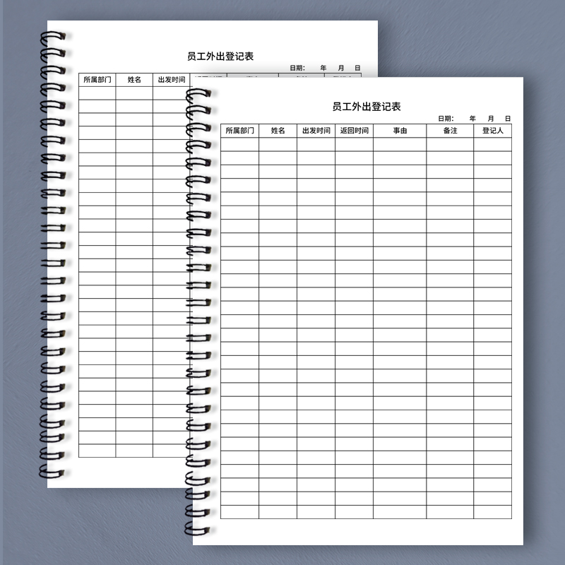 员工外出登记表员工出差记录工人外出记录本员工差旅登记本职工出差情况记录本企业员工考勤外出管理记录本A4