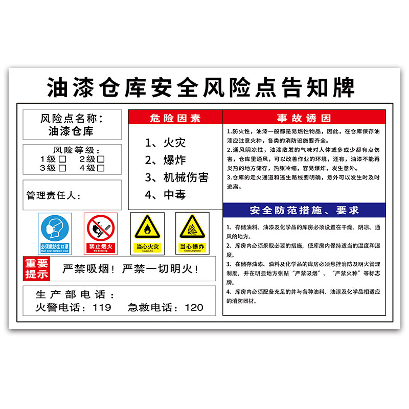 油漆仓库安全风险告知牌喷漆房警示标志油漆房标识牌严禁烟火注意通风环保标志牌贴纸油漆安全警示牌标牌定制