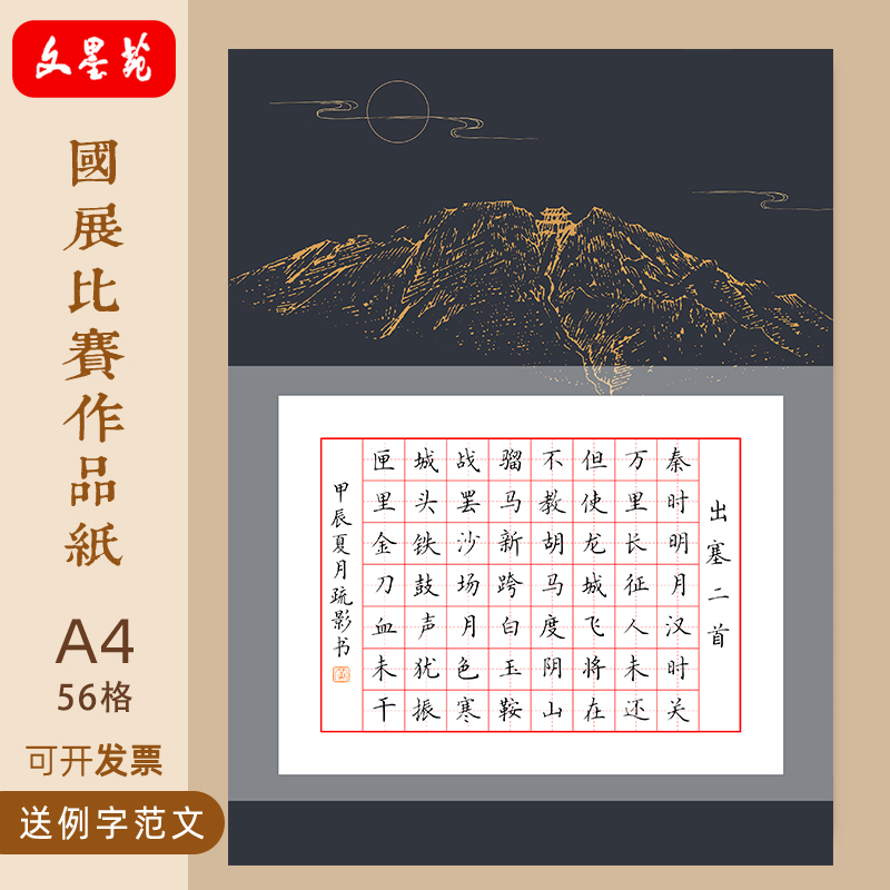 文墨苑A4古风硬笔书法作品纸120g加厚竹浆纸156格黑底白字古诗工之侨献琴例字模板16k硬笔书法比赛作品纸