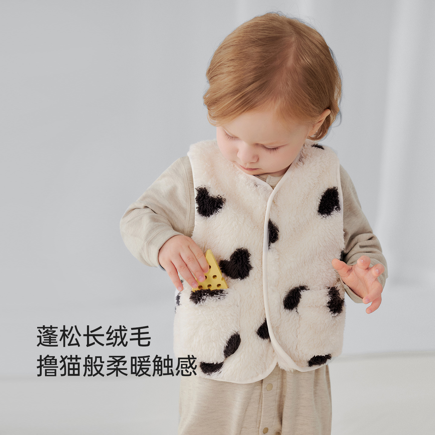 babylove婴儿马甲秋冬季舒棉绒外穿背心宝宝百搭保暖上衣毛绒坎肩