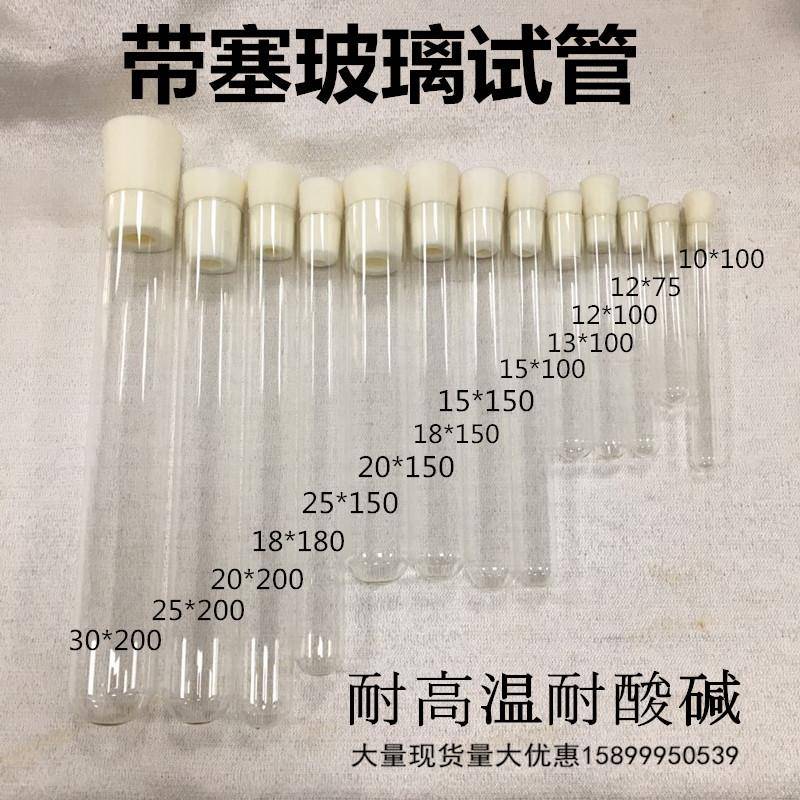 试管 玻璃 平口圆底 玻璃试管带塞15*150 10 12 13 15 18 20 25mm