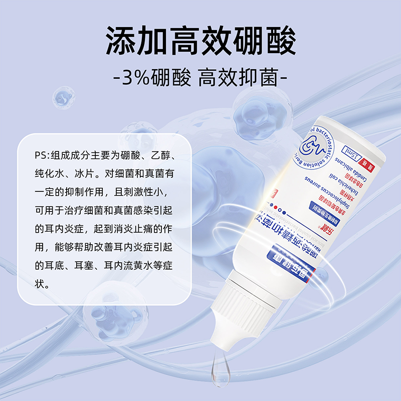 硼酸酒精滴耳液中耳硼酸冰片止痒耳道清洗软化耳屎耳痛