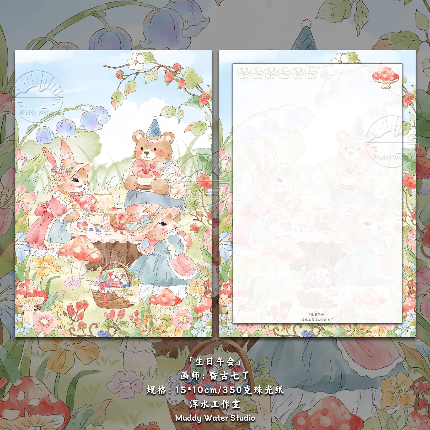 「生日午会」原创插画明信片手绘小众珠光创意手绘