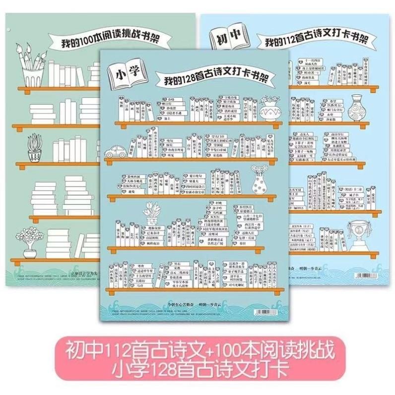 我的古诗打卡小书架129首自律古诗词打卡背诵计画安排涂色表儿童