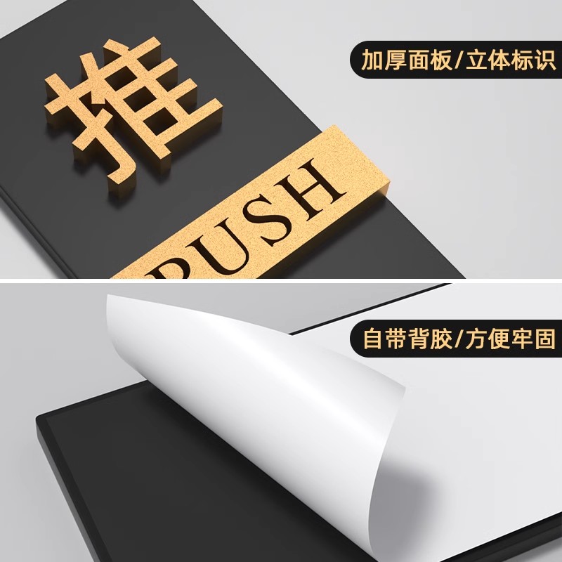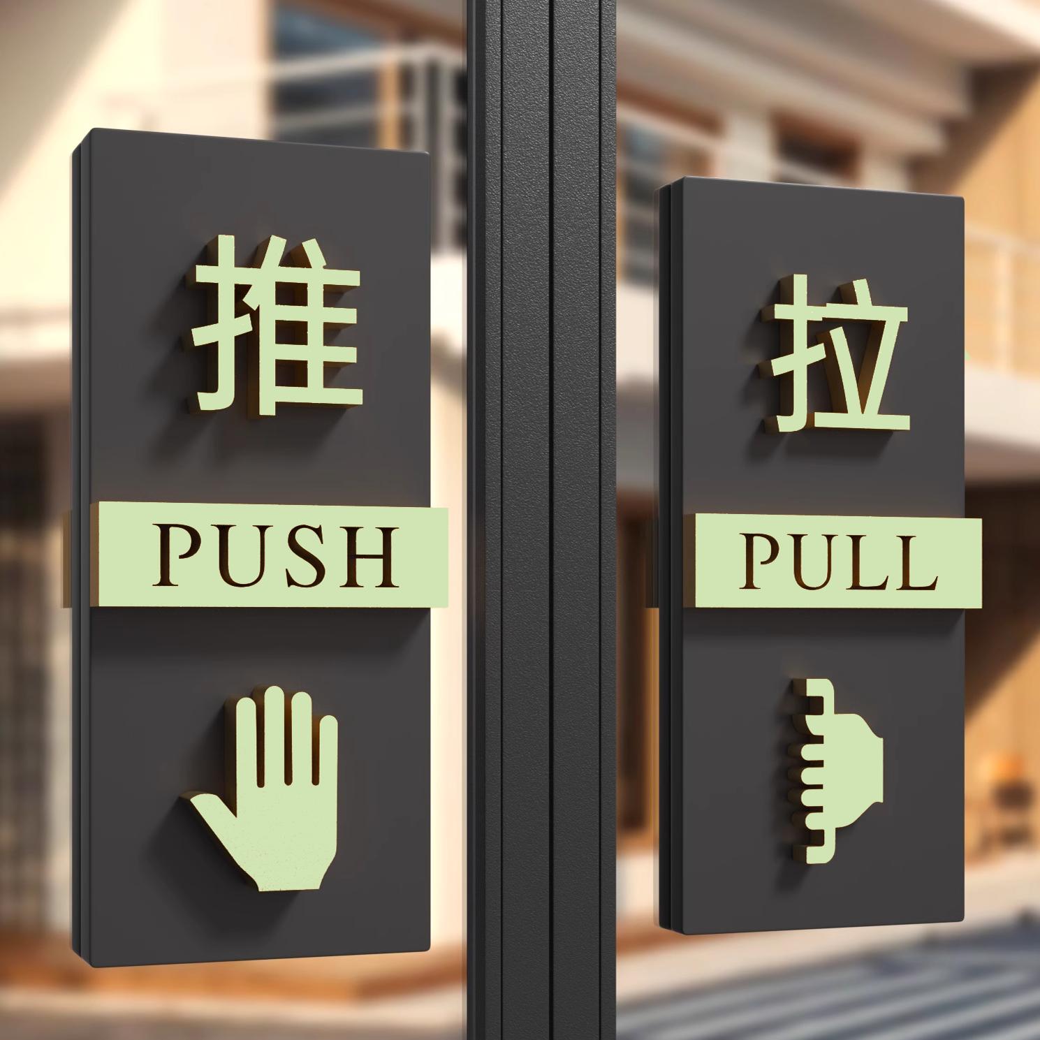 夜光亚克力推拉门提示牌开门指示推拉门贴提示牌玻璃门拉字推门标识牌创意高级标志定制高档酒店家用门牌贴纸