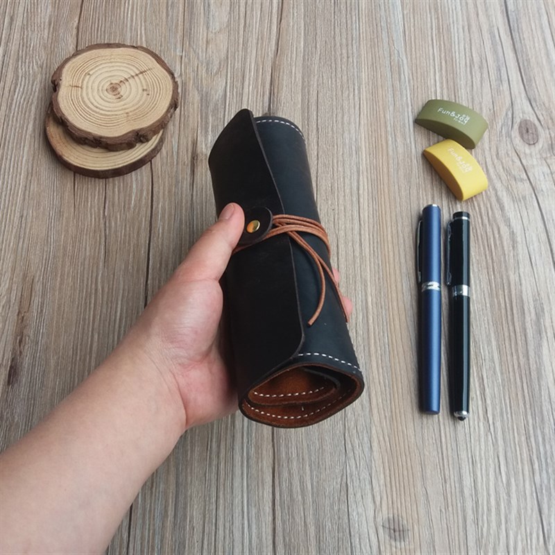真皮5只装手工笔袋简约牛皮钢笔保护套韩版复古多功Y能笔帘男女式