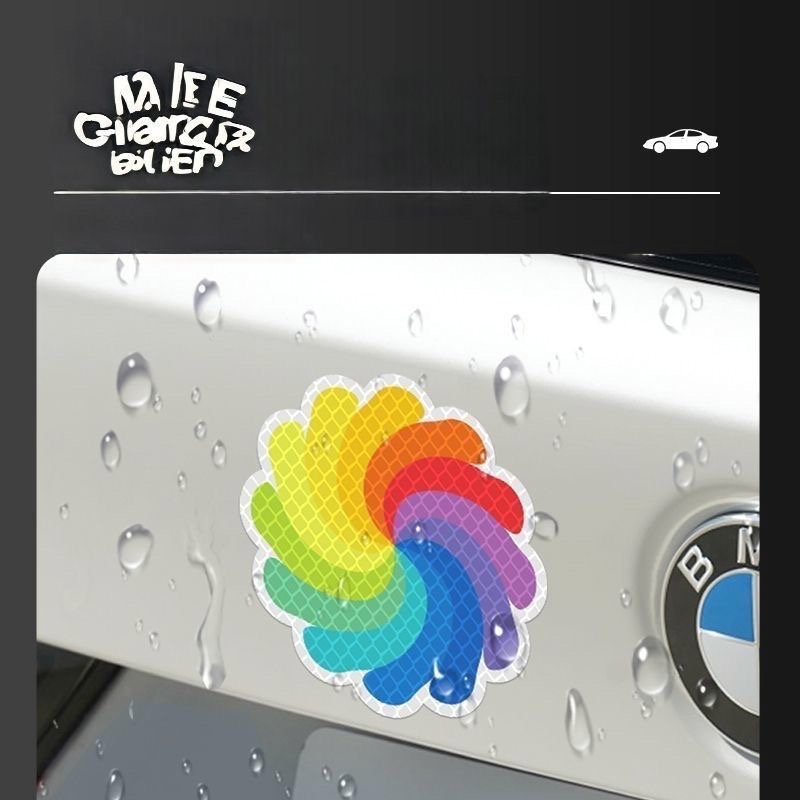 砖石级电动车头盔夜间防撞警示贴画汽车划痕遮挡信号反光车贴装饰