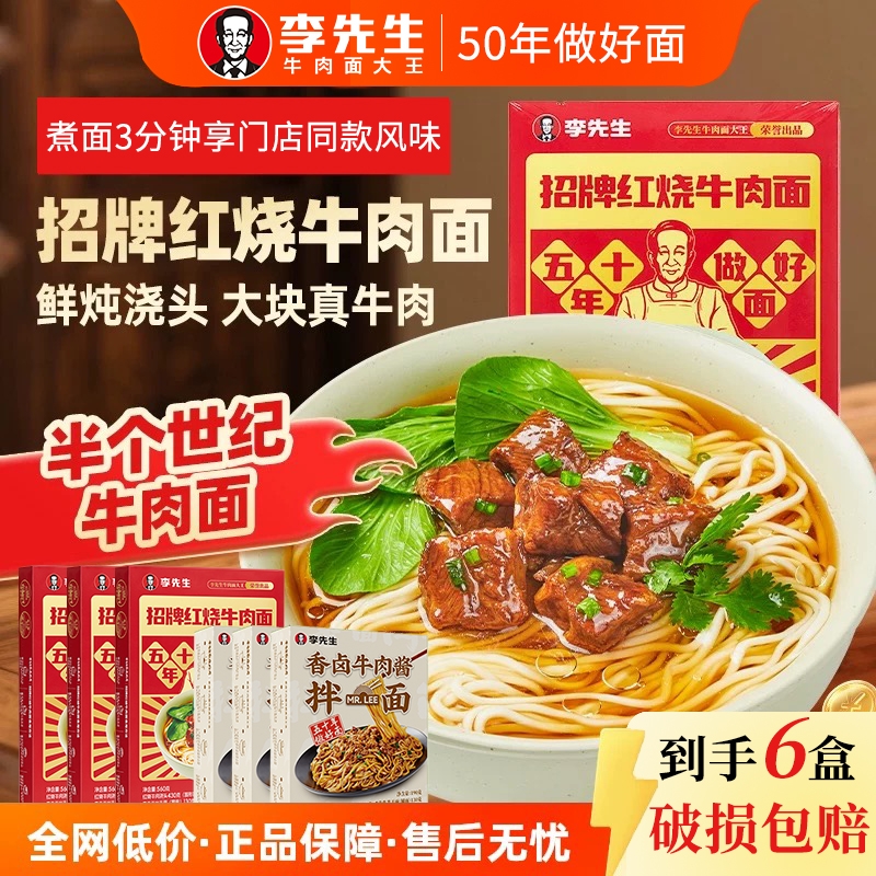 李先生量贩装招牌红烧牛肉面大块牛肉非油炸速食早餐夜宵汤面整箱