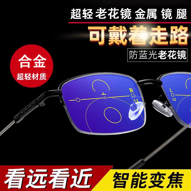 老花眼镜中老年人高清老花镜男高清防蓝光老年人女多功能自动变焦