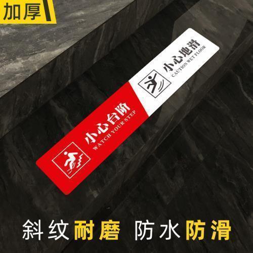 双色小心台阶地贴耐磨防滑防水户外贴纸温馨提示创意长条注意指示牌室外警示小心地滑贴地面标识牌