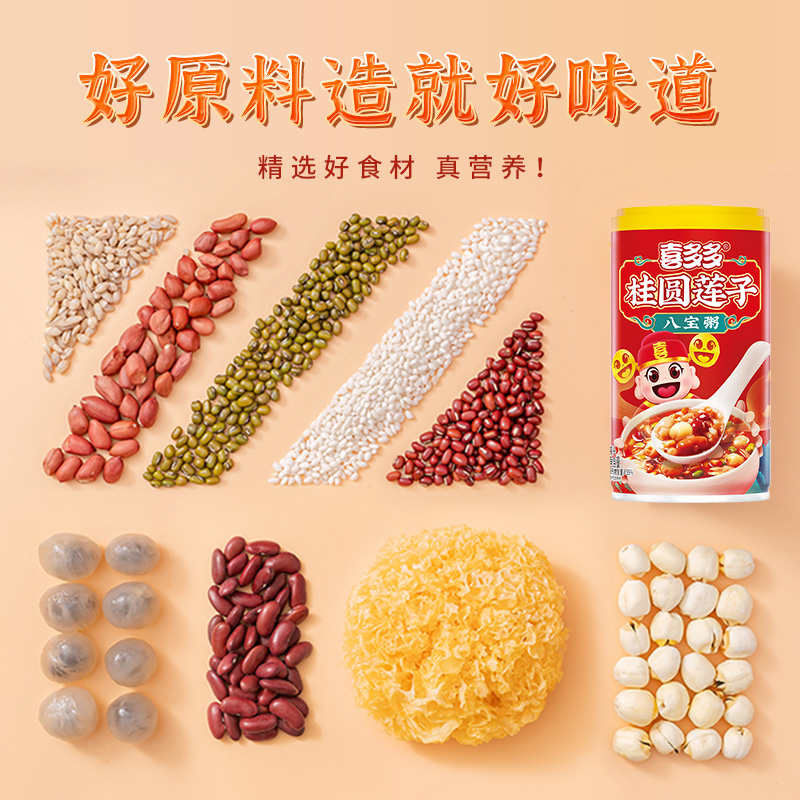 喜多多桂圆莲子八宝粥罐头速食粥营养早餐五谷杂粮粥休闲零食