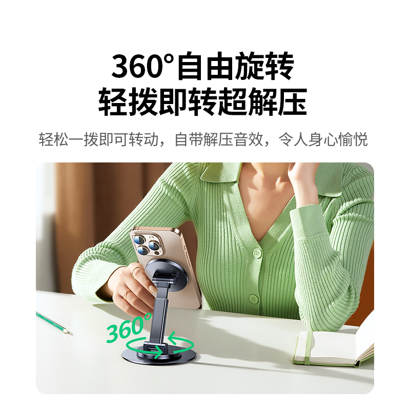 绿联磁吸手机支架桌面360度旋转适用magsafe平板支撑架懒人网课追剧直播通用升降折叠便携多功能铝合金金属