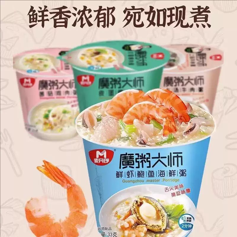 速食粥免煮早餐冲泡懒人即食皮蛋瘦肉海鲜冻干咸粥海福食品零食盛