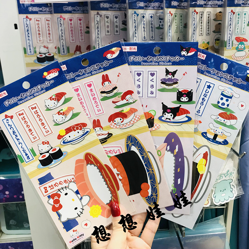 现货日本三丽鸥kitty玉桂狗美乐蒂库洛米公仔寿司手账装饰贴纸