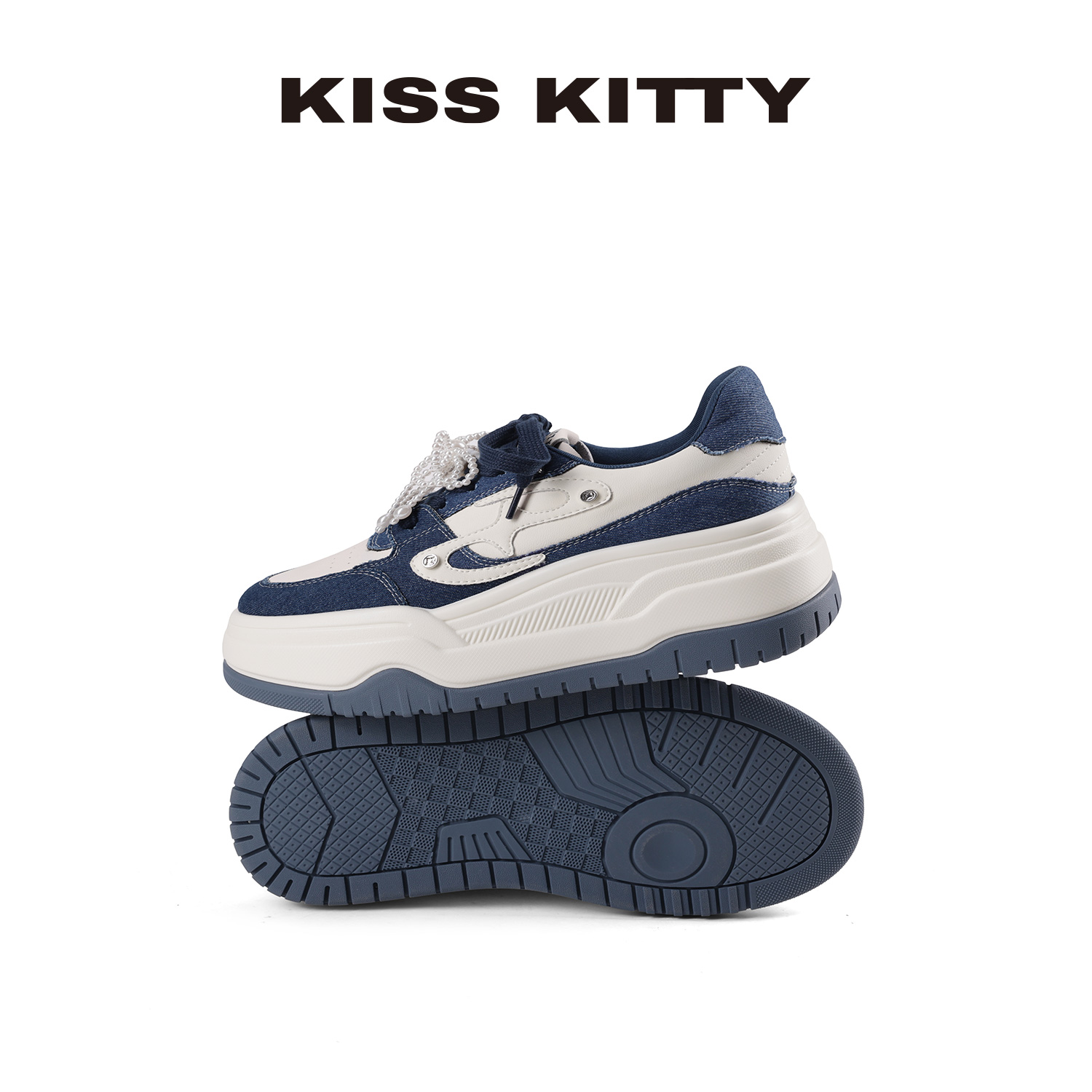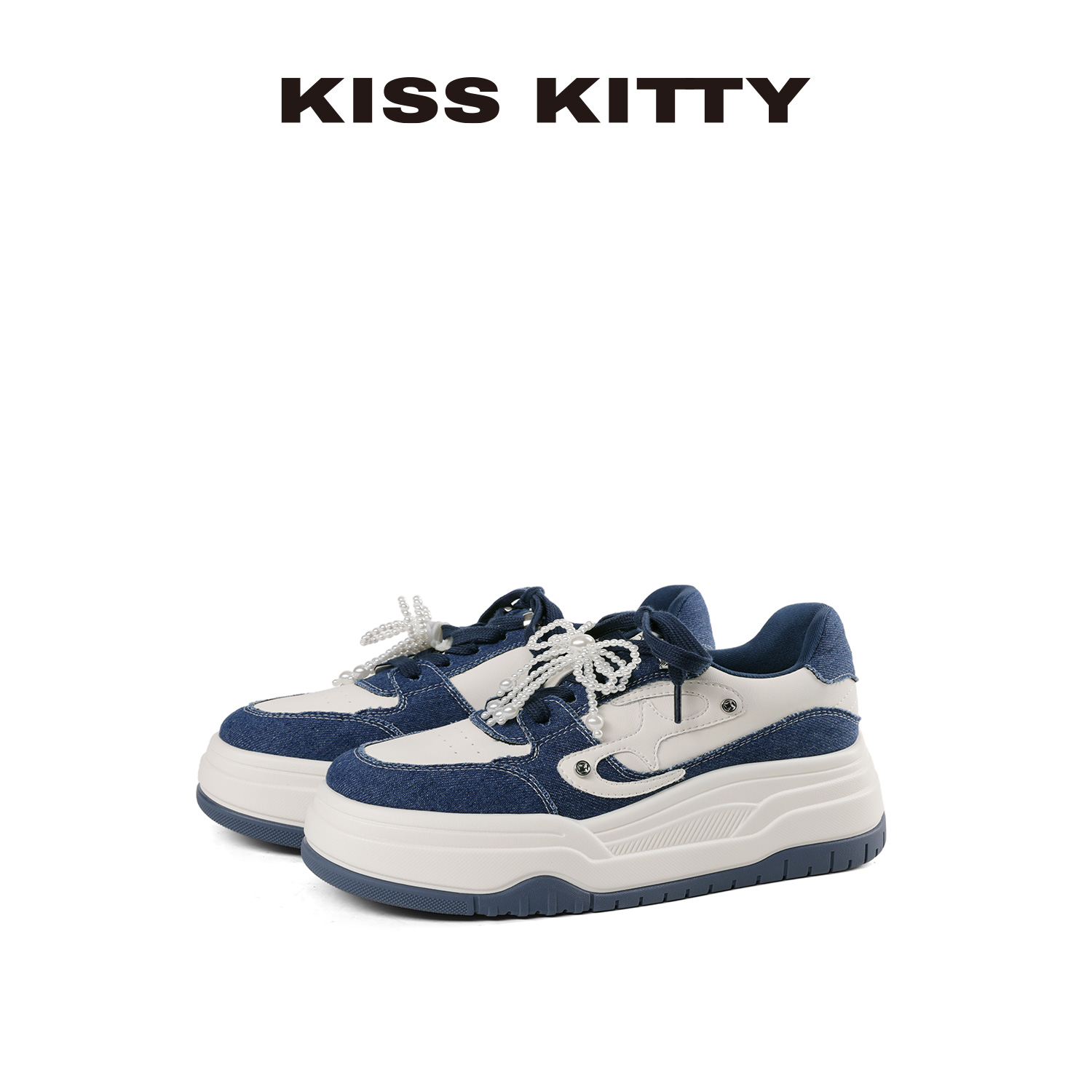 KISSKITTY板鞋女款2025新款帆布拼色学生百搭帆布厚底增高运动鞋