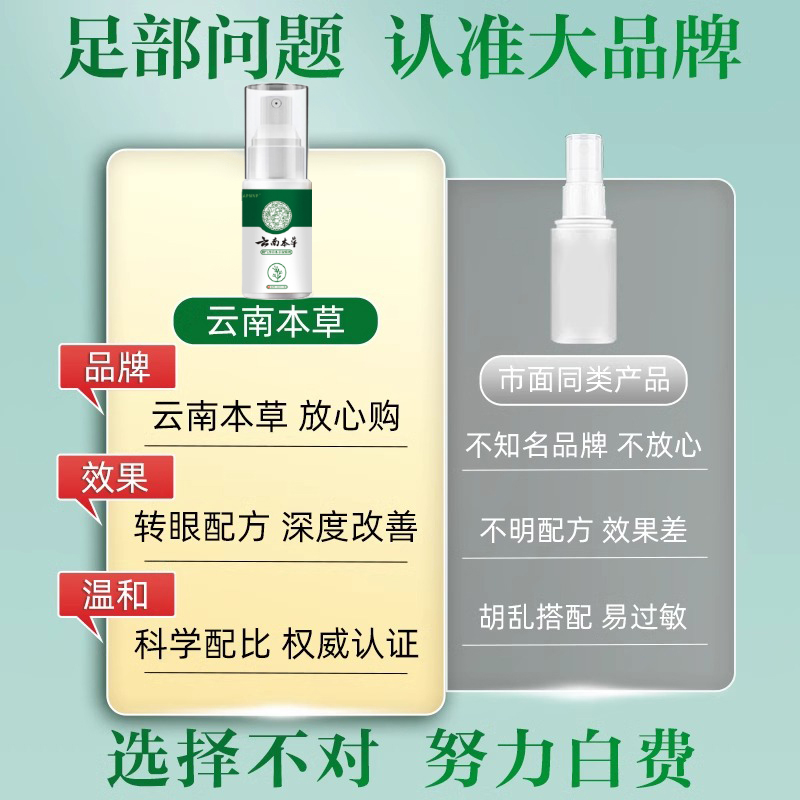云南本草脚气喷雾剂烂脚丫脱皮糜烂止痒脚趾杀菌真菌感染专用潮湿