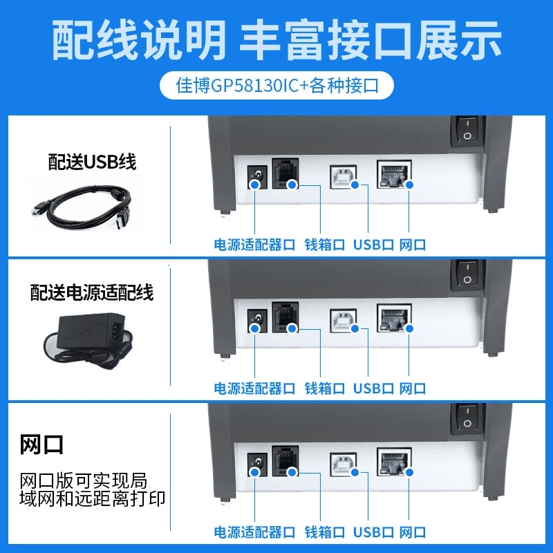 佳博GP58130IC+热敏USB网口小票据超市外卖餐饮前台收银后厨房打印机服装进销存销售开单58mm小票打印机