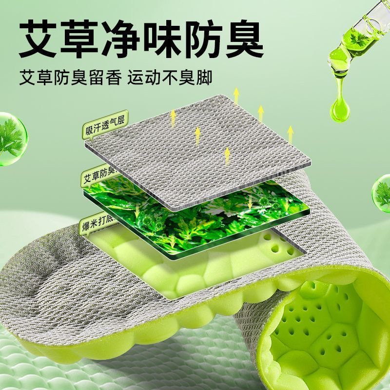 艾草防臭踩屎感运动鞋垫按摩男女通用军训舒适减震软底鞋透气垫子